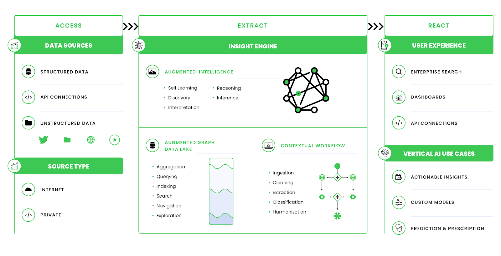 Houndoc combines cognitive search with machine learning capabilities to process massive amounts of information from databaes, excel files, documents and multimedia assets to generate insights for decision making